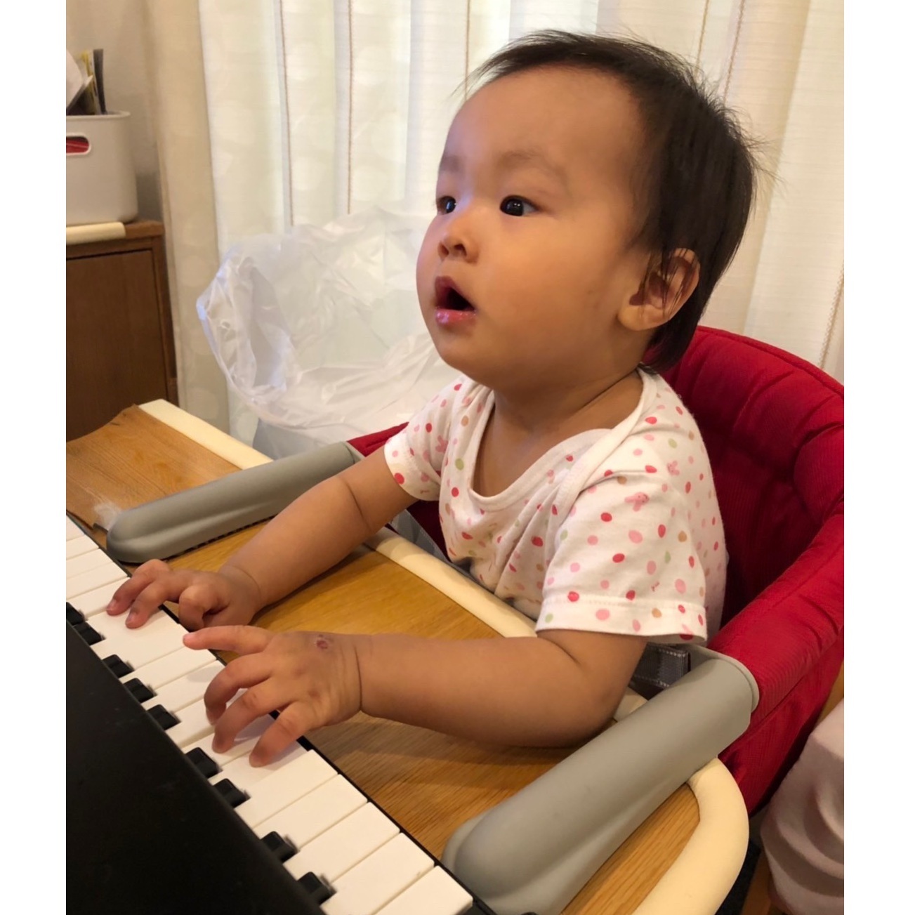 発達がゆっくりな娘ですが、音楽で笑ったり、装具をつけて立つと誇らしげな顔をしたり、とても可愛いです。