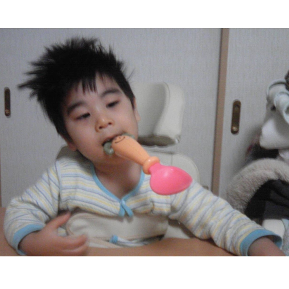 母が何かこぼしたり、慌てるといたずらっぽく笑って和ませてくれます。